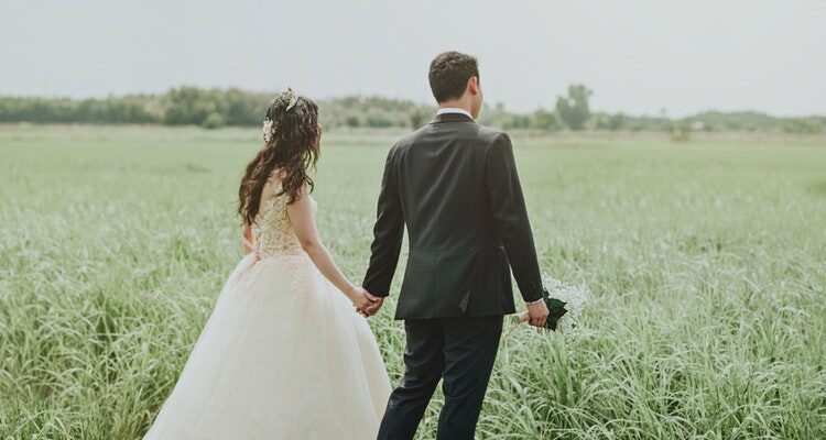 Casal de Noivos Caminham Juntos